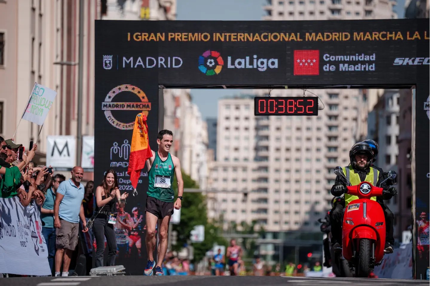 La primera edición del Gran Premio Internacional Madrid Marcha LaLiga se estrenó este lunes por todo lo alto en la capital. Que fuera día festivo en la región por el Día de San Isidro, ayudó a que un gran número de aficionados se congregasen en la Gran Vía madrileña, un escenario inmejorable para el evento. El cartel de la prueba absoluta era de lujo: 45 de los 85 competidores habían estado en los pasados Juegos Olímpicos. Y el nombre propio del día fue el de Diego García Carrera, subcampeón europeo en 20 kilómetros y principal culpable de la celebración de este Gran Premio, de categoría Gold y puntuable para el ranking mundial de World Athletics. El madrileño, además de participar en la prueba, donde finalizó en segunda posición por detrás del sueco Karlstrom, fue el organizador de todo el evento.