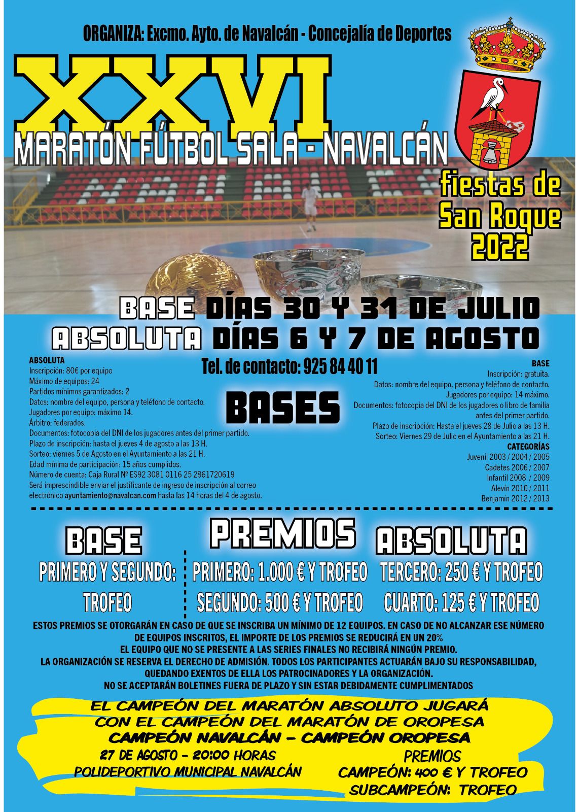Se RECUERDA a todos los EQUIPOS INTERESADOS en participar en el XXVI Maratón de Fútbol Sala Base y Absoluto las fecha establecidas: