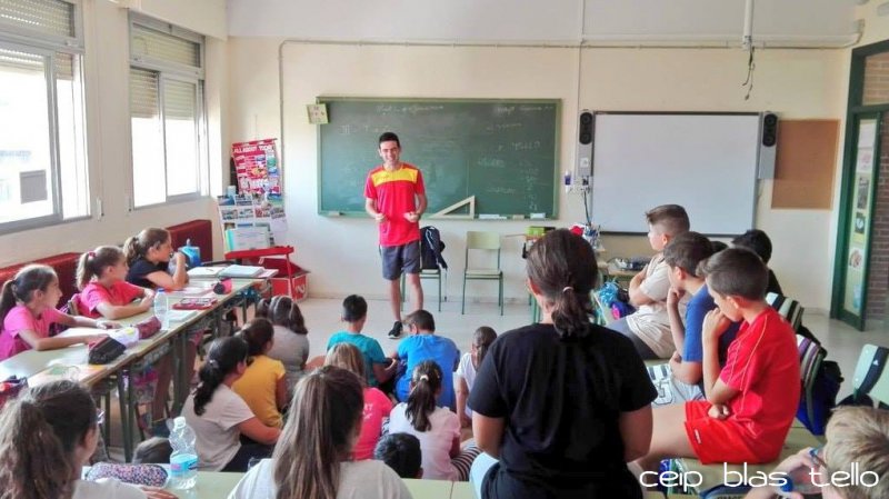Vuelta a sus raíces para Diego García Carrera, quien aprovechando el final de temporada y unos días libres visitaba la localidad de Navalcán y lo hacía para visitar a sus jóvenes paisanos del Colegio ‘Blas Tello’.