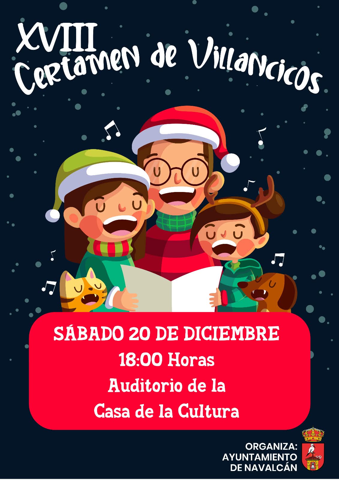 El próximo sábado 20 de diciembre a las 18:00 horas, el Auditorio de la Casa de la Cultura de Navalcán se llenará de espíritu navideño con la celebración del XVIII Certamen de Villancicos, organizado por el Ayuntamiento de Navalcán.