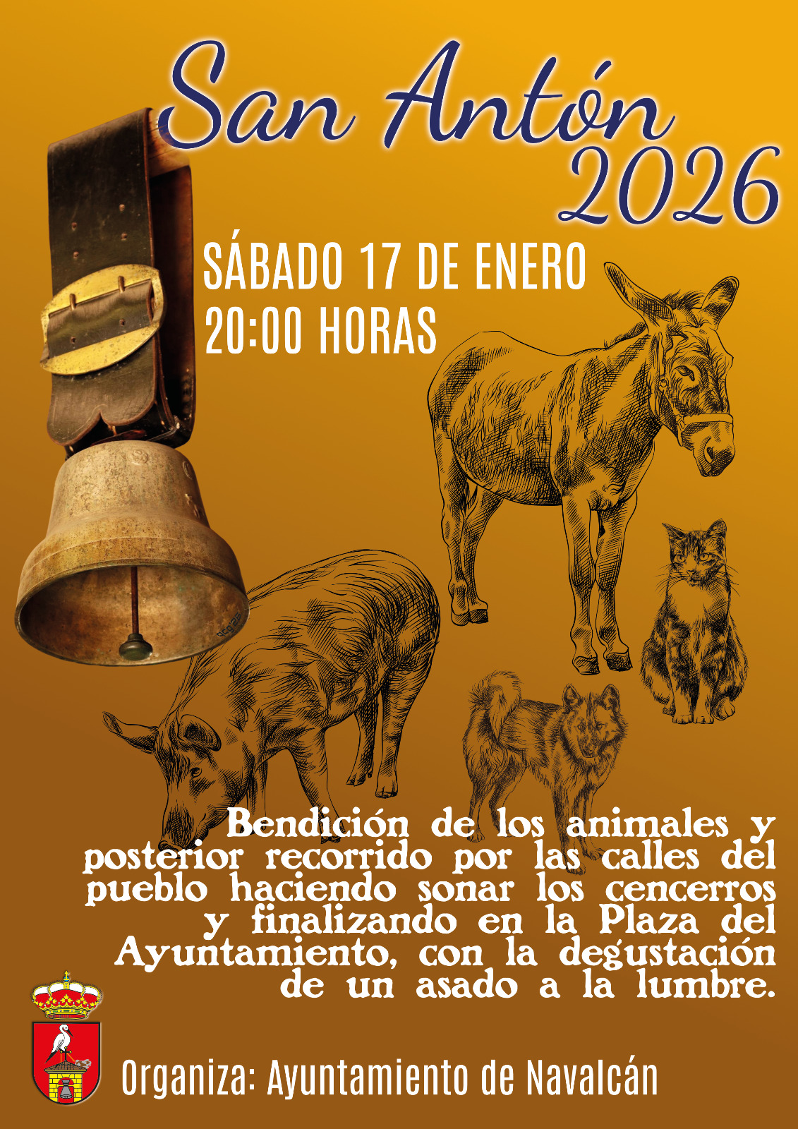 El Ayuntamiento de Navalcán prepara la celebración de la festividad de San Antón, una de las tradiciones más arraigadas del municipio para los amantes de los animales, que tendrá lugar el sábado 17 de enero a partir de las 20:00 horas en la Plaza de la Constitución.